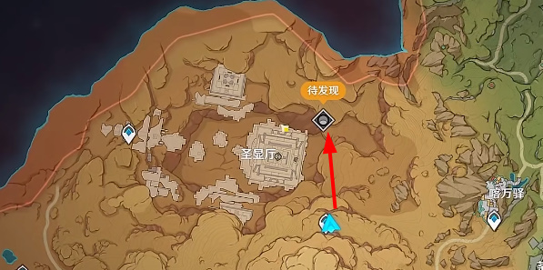 1、首先我们需要打开地图,在圣显厅东南方向下图位置的传动点,朝着箭头所指位置移动。