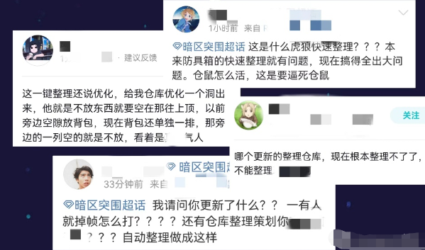 尽管好评如潮,但并不代表游戏完美——玩家们也对游戏的改进提出了一些中肯的建议,其中最突出的就是对游戏“快速排序”功能改动的不满。游戏内仓库。在这些玩家看来,“自动分拣”功能似乎不是很智能,分拣占用的空间比人工分拣要大,显得有些鸡肋。