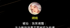 蓝条格挡直接不视为护盾,这意味着嫦娥不再怕伽罗,吕布,马可波罗这类真伤英雄,对沈梦溪和嫦娥的加强,玩家评价是“断头饭”,我觉得不要太贴切,因为这两个英雄都属于强势不弱的英雄,嫦娥更是属于极端而不是弱势。